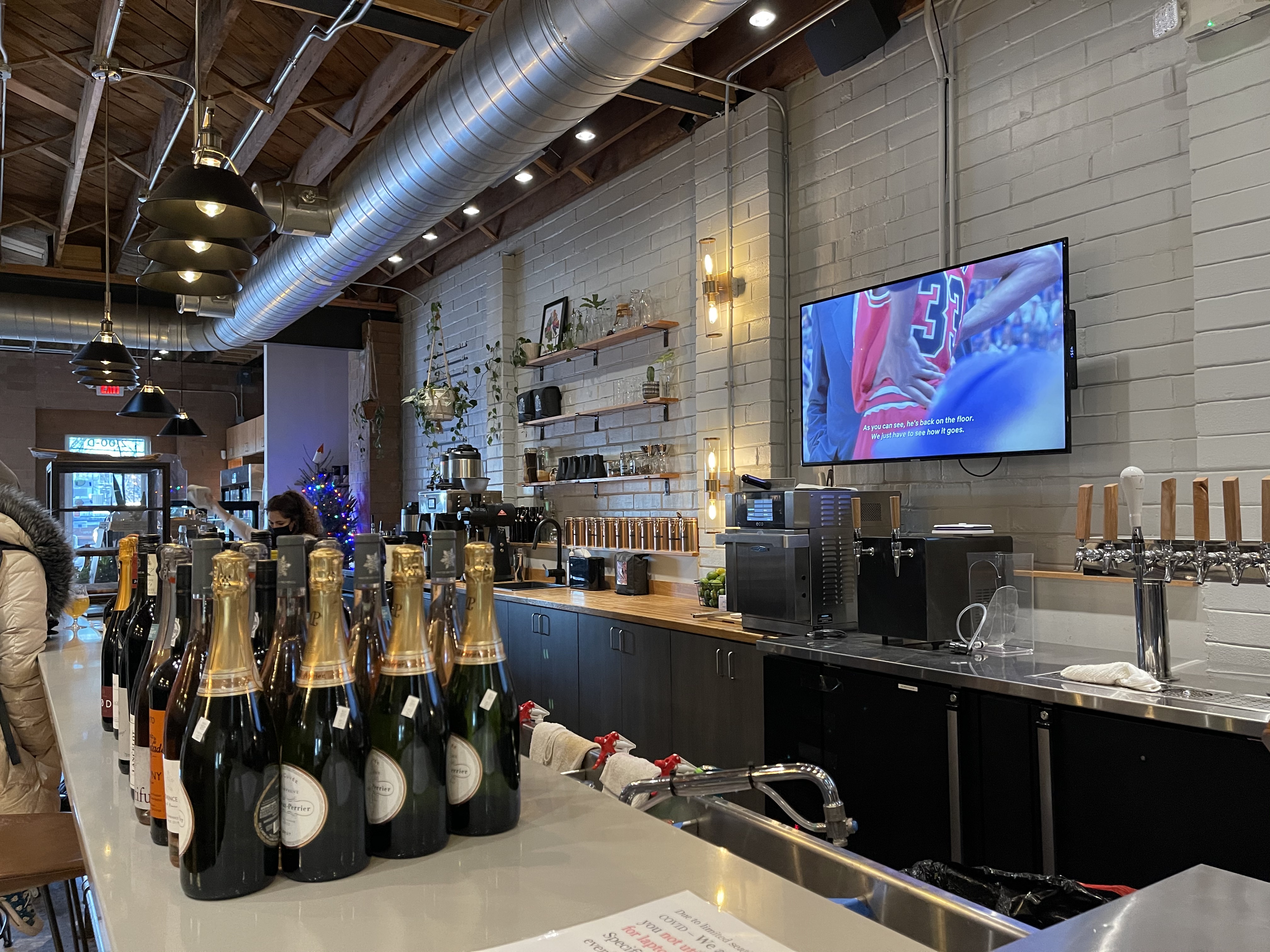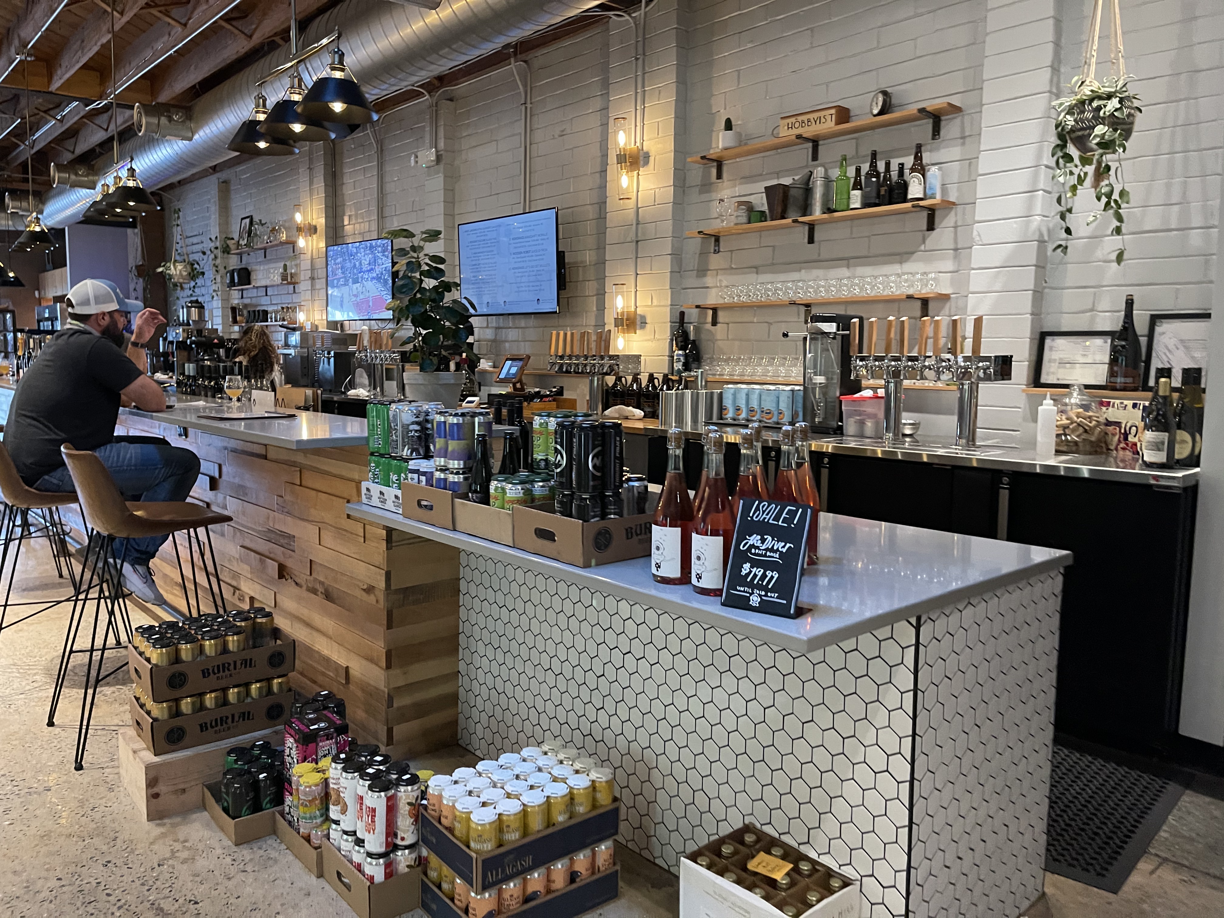 A craft beer shop and bar with 24 taps, 8 refrigerated shelves, lots of wine and a coffee bar.
