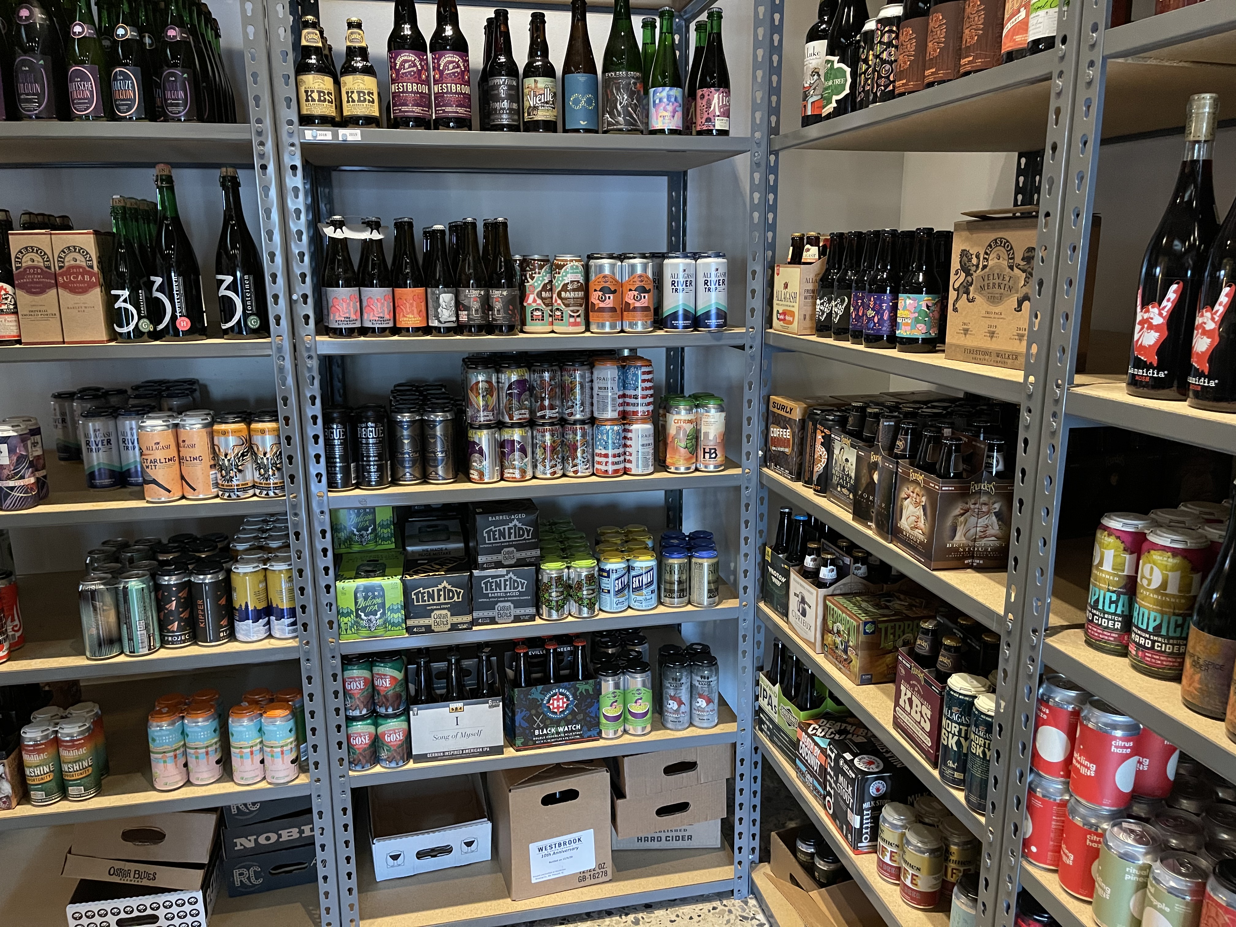 You’ll also find seating out front, as you enter and in the back as well as a long bar. A nice selection of local brewery beers is sold in cans and bottles as singles or multi packs.
